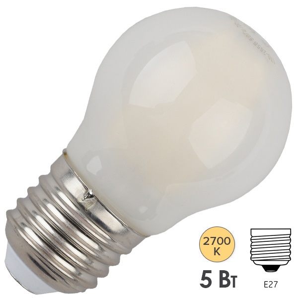 Лампочка светодиодная ЭРА F-LED F-LED P45-5W-827-E27 frost Е27 / Е27 5Вт филамент шар матовый теплый белый свет