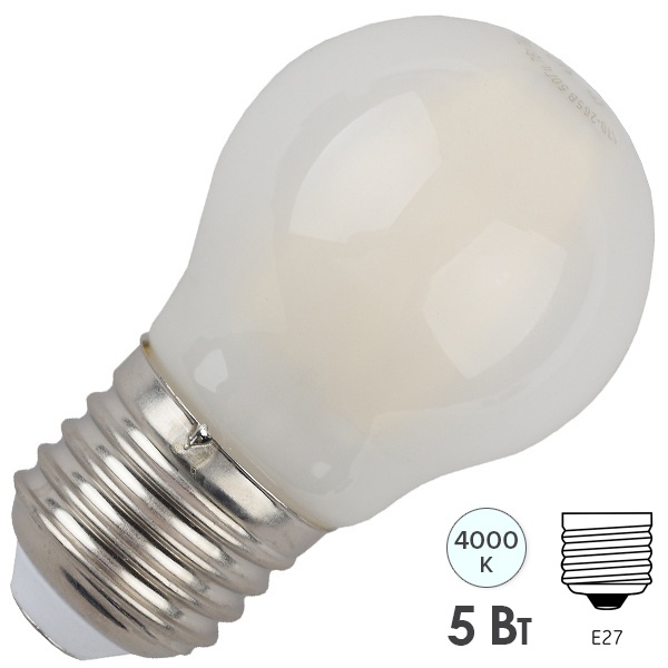 Лампочка светодиодная ЭРА F-LED F-LED P45-5W-840-E27 frost Е27 / Е27 5Вт филамент шар матовый нейтральный белый свет