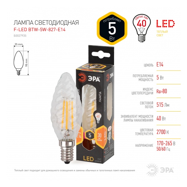| Форма лампы/колбы | Свеча витая |