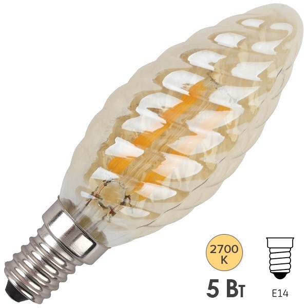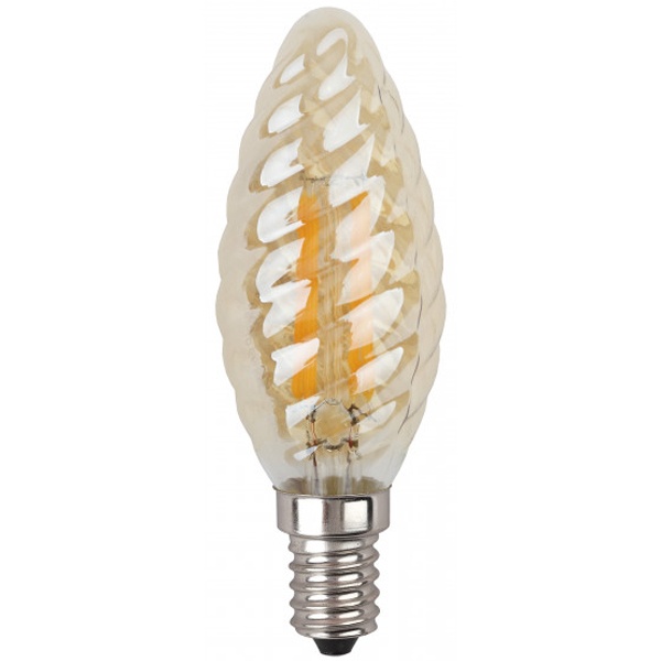 Светодиодная винтажная лампочка витая свеча с нитевидными светодиодами, золотистая колба, мощностью 5 Ватт, с цоколем E14, теплый свет Б0027941