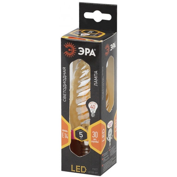 Лампочка светодиодная ЭРА F-LED F-LED BTW-5W-827-E14 gold Е14 / Е14 5Вт филамент свеча витая золотая теплый белый свет
