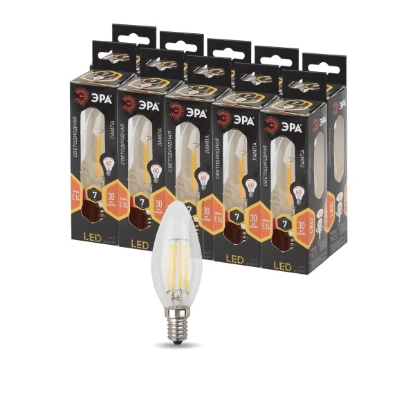 Лампочка светодиодная ЭРА F-LED F-LED B35-7W-827-E14 Е14 / Е14 7Вт филамент свеча теплый белый свет