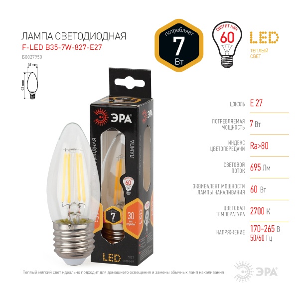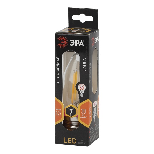 Лампа светодиодная филаментная F-LED B35-7W-827-E27 Эра Б0027950