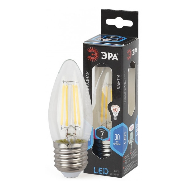 Лампочка светодиодная ЭРА F-LED F-LED B35-7W-840-E27 Е27 / Е27 7Вт филамент свеча нейтральный белый свет