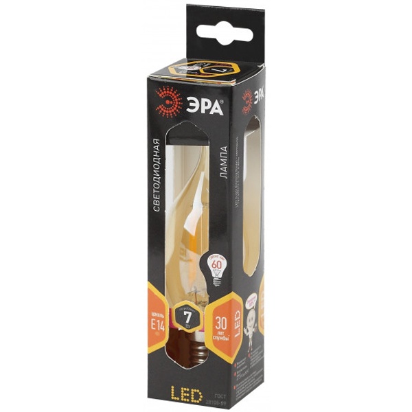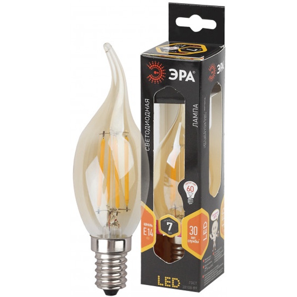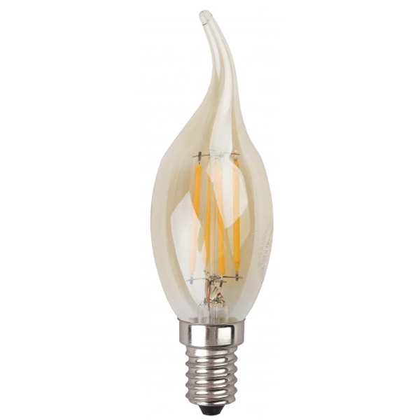 Светодиодная винтажная лампочка свеча на ветру с нитевидными светодиодами, золотистая колба, мощностью 7 Ватт, с цоколем E14, теплый свет Б0027965