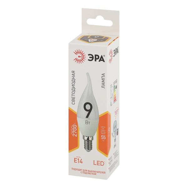 Лампа светодиодная BXS-9w-827-E14 свеча на ветру 720лм Эра Б0027973