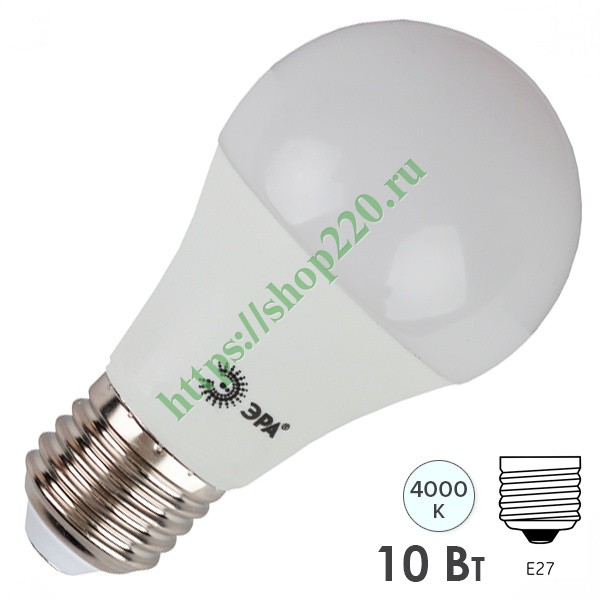Светодиодная лампочка формы груша ЭРА, мощностью 10 Ватт, с цоколем E27, нейтральный белый свет Б0028005