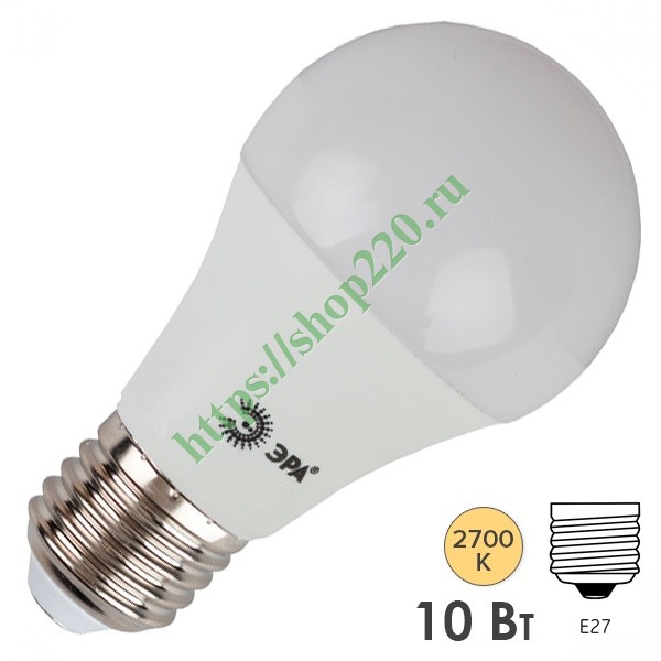 Светодиодная лампочка формы груша ЭРА, мощностью 10 Ватт, с цоколем E27, теплый свет Б0028006