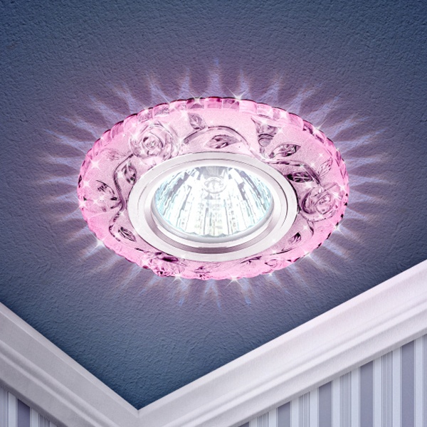 Встраиваемый точечный светильник Эра розовый свет со светодиодной белой подсветкой 12 Вольт, цоколем GU5.3 Б0028084