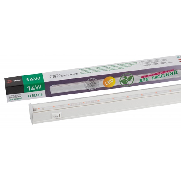 Светильник для растений, фитолампа светодиодная линейная ЭРА LLED-05-T5-FITO-14W-W полного спектра 14 Вт