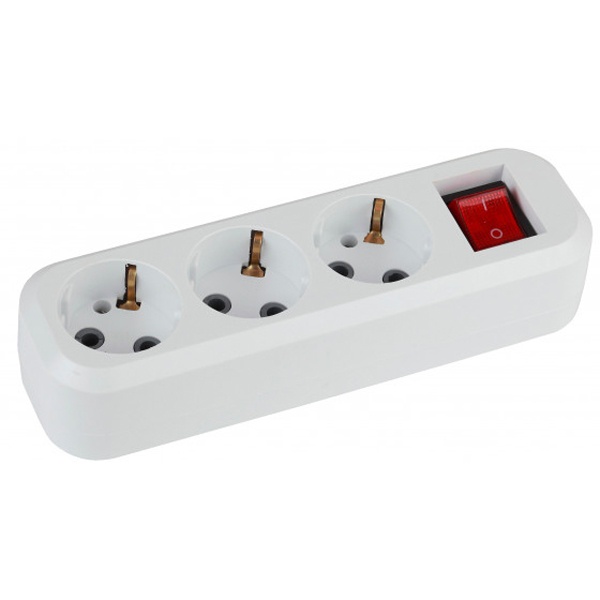 Розеточная колодка на 3 гнезда 16 A с заземляющими контактами и выключателем ИЭК для удлинителя Б0028342