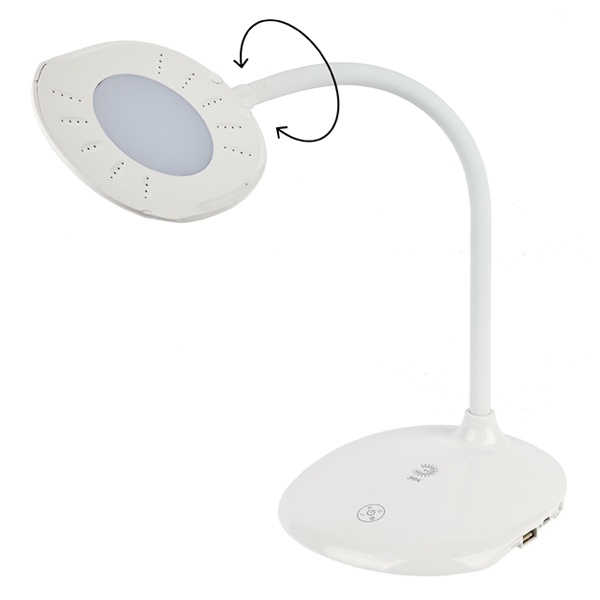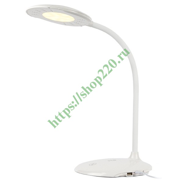Настольный светильник со светодиодами, мощностью 6 Ватт, 3 режима цветовой температуры, с USB портом для зарядки устройств, цвет белый Б0028455