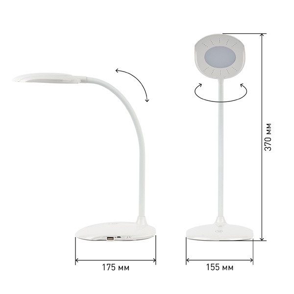 - Высота плафона регулируется гибкой стойкой, направление света регулируется поворотом плафона в любом направлении
