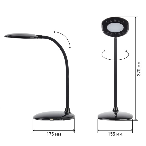 - Высота плафона регулируется гибкой стойкой, направление света регулируется поворотом плафона в любом направлении