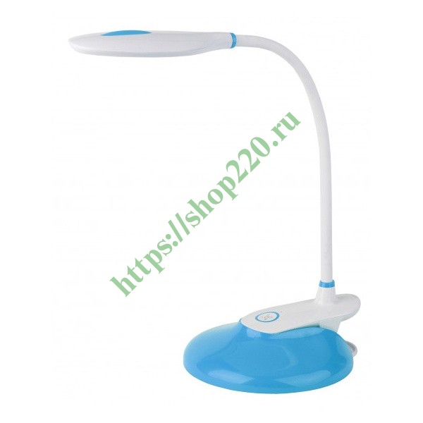 Синий светодиодный светильник с сенсорным управлением яркостью и цветовой температурой, 2 варианта установки(прищепка, основание), питанием о тсети 220 Вольт, мощностью 9 Ватт. Б0028459