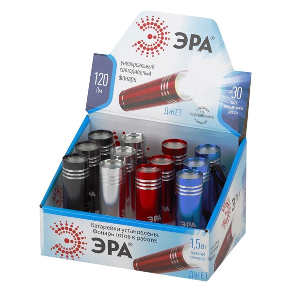 Универсальный светодиодный фонарь Джет с корпусом из анодированного алюминия. Такой корпус очень надёжный, не подвергается коррозии, очень прочный и долговечный. Этот фонарь компактный и очень простой, он создан для повседневного использования в быту. Именно поэтому он сделан из качественного материала. Особенность светодиодных фонарей ЭРА — светодиоды нового поколения. В фонаре Джет использованы светодиоды премиум класса, они на 50% ярче стандартных и имеют цветовую температуру 6000К. Это значит, фонарь светит ярким белым светом, приближенным к естественному, и не отдаёт в синеву. Фонарь обеспечивает до 30 часов непрерывной работы с мощностью в 1,5 Вт. Этого более чем достаточно для использования в городских условиях. Дальность луча Джет — 120 метров. Фонарик легко носить и хранить, с ремешком, который позволит прицепить фонарик к карману или повесить на сумку. Джет — маленький, качественный фонарик для самых разных бытовых нужд.