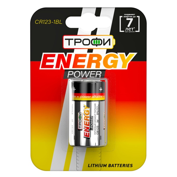 Элемент питания литиевый CR123-1BL (блист. 1шт) Трофи Б0029644