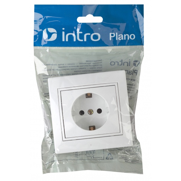 1-206-01 Intro Розетка 2P+E Schuko со шторками, 16А-250В, IP20, СУ, Plano, белый (10/200/2000)