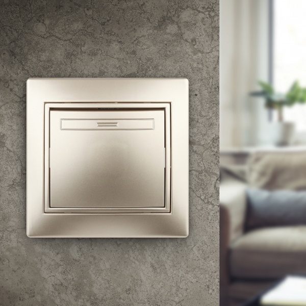 Одноклавишный выключатель цвета шампань для скрытой установки в сухих помещениях, Intro серии Plano. Б0030031