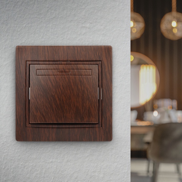 Одноклавишный выключатель цвета венге для скрытой установки в сухих помещениях, Intro серии Plano. Б0030032.