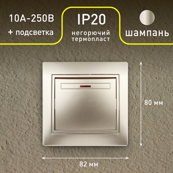 1-102-04 Intro Выключатель с подсветкой, 10А-250В, IP20, СУ, Plano, шампань (10/200/2400)