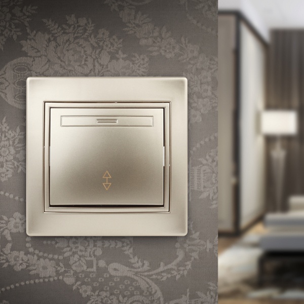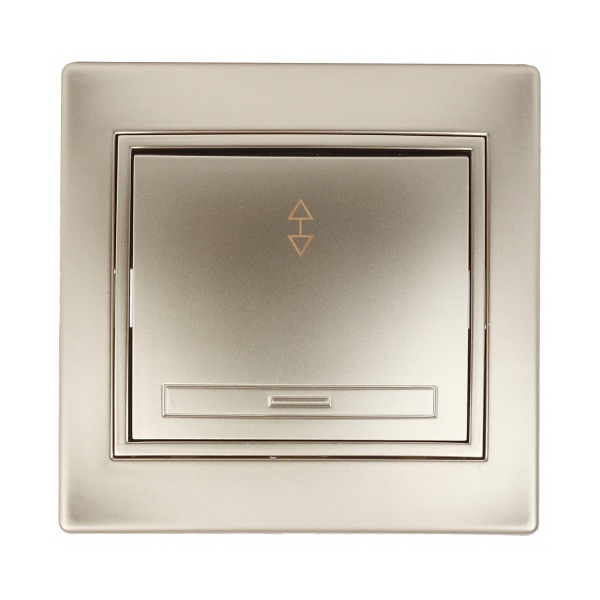 Одноклавишный проходной выключатель цвета шампань для скрытой установки в сухих помещениях, Intro серии Plano. Б0030039