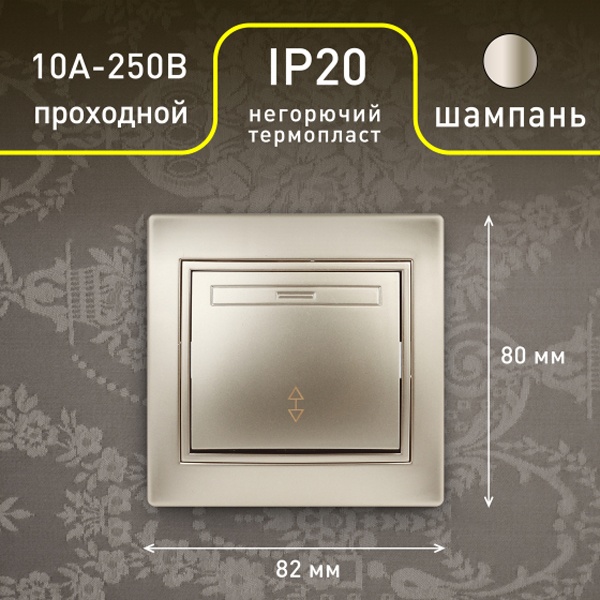 1-103-04 Intro Переключатель, 10А-250В, IP20, СУ, Plano, шампань (10/200/3200)
