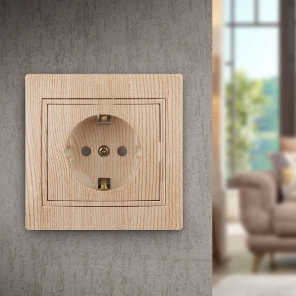 Электрическая розетка немецкого стандарта со шторками для скрытого монтажа в сухих помещениях, цвет сосна, Intro Plano. Б0030077