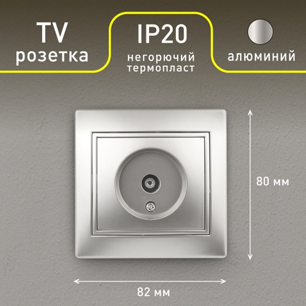 Розетка TV Intro одиночная IP20 Plano, алюминий 1-301-03 Б0030078