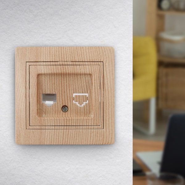 Компьютерная интернет розетка RJ45 для скрытого монтажа в сухих помещениях, цвета сосна, Intro Plano. Б0030089