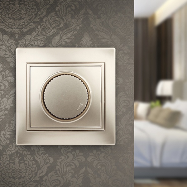 Поворотный диммер скрытой установки в сухих помещениях, мощностью до 600Вт, цвет шампань, Intro Plano. Б0030091