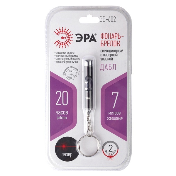 BB-602 Фонарь ЭРА брелок [1xLED + лазерная указка, алюм, бат в компл, бл] (10/60/1980)