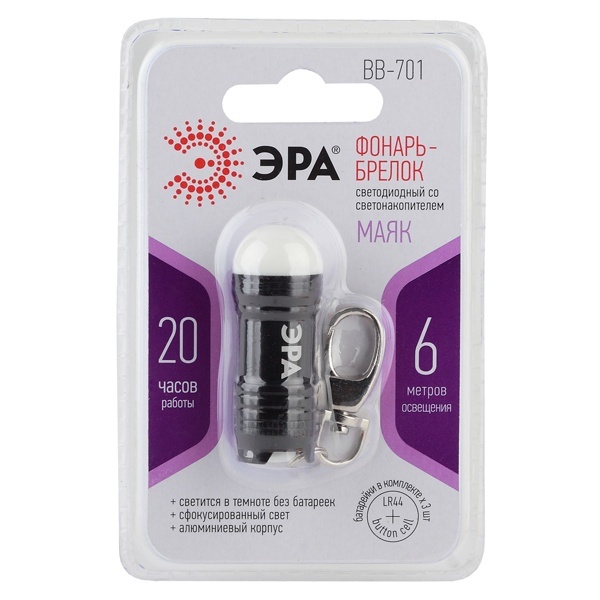 Светодиодный фонарь-брелок BB-701 оснащён одним белым светодиодом. Это маленький, яркий и готовый к работе брелок (батарейки в комплекте). Фонарик работает 20 часов без перерыва не требуя замены питания. Светит сфокусированным белым ярким светом, дальность луча составляет 6 метров, а световой поток 20 Лм. Фонарик всегда будет легко найти, поскольку он оснащён светонакопителем и светится в темноте. То есть после выключения может светиться до 30 часов в полной темноте. Это очень помогает, когда необходимо срочно найти источник освещения при каких-либо обстоятельствах. BB-701 не просто симпатичный брелок, а качественный компактный фонарик. Он всегда под рукой и поможет найти замочную скважину, осветить тёмную лестницу, найти упавшую вещь и пригодиться ещё во множестве бытовых ситуаций. Корпус выполнен из алюминия, а супер экономичный светодиод не перегорает и не требует замены.