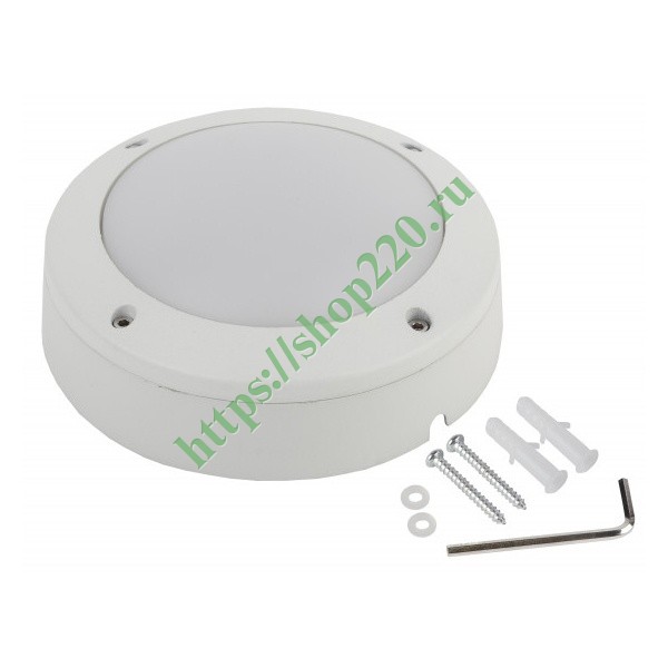 Светодиодный, круглый светильник, пылевлагозащищенный, антивандальный, мощностью 12 Ватт, белый свет Б0030243