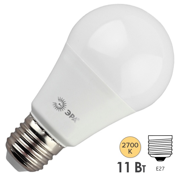 Лампа светодиодная A60-11w-827-E27 грушевидная 880лм ЭРА Б0017233/Б0030910