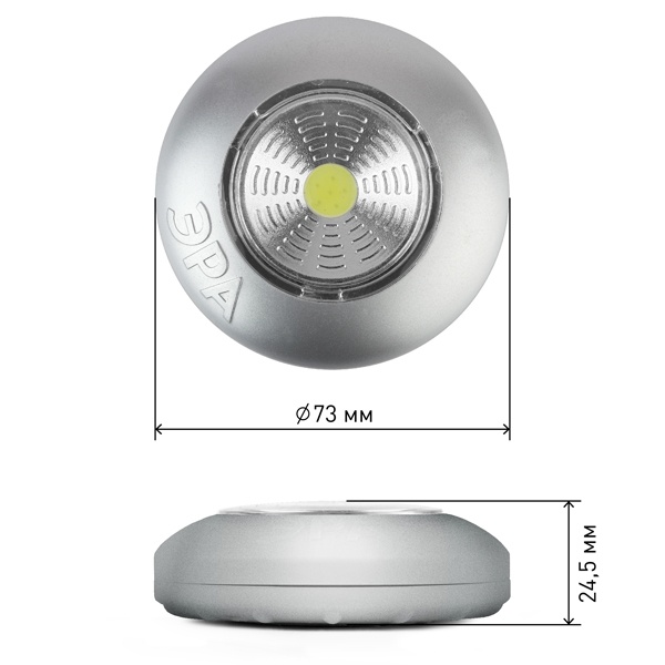 • Фонарь ЭРА пушлайт SB-504 NEW Аврора COB, батареи 3xAAA, серебристый