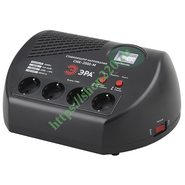 Автоматический однофазный стабилизатор напряжения ЭРА СНК-2000-М, полная мощность 2000 ВА, четыре розетки, метрический индикатор