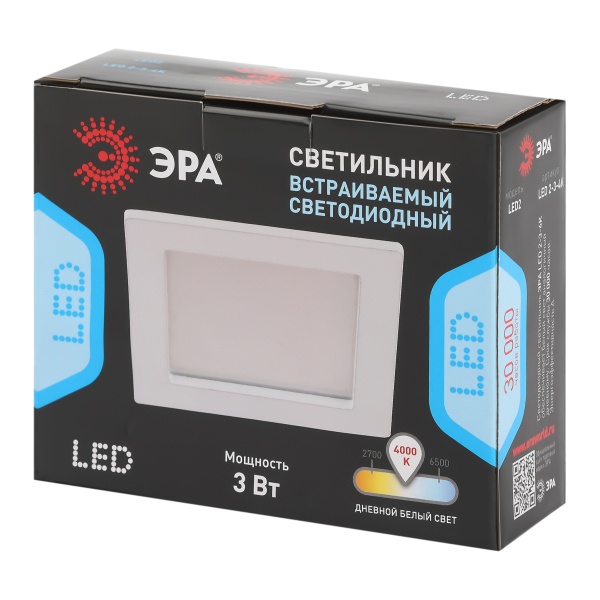 LED 2-3-4K Светильник ЭРА светодиодный квадратный LED 3W 220V 4000K (100/1400)