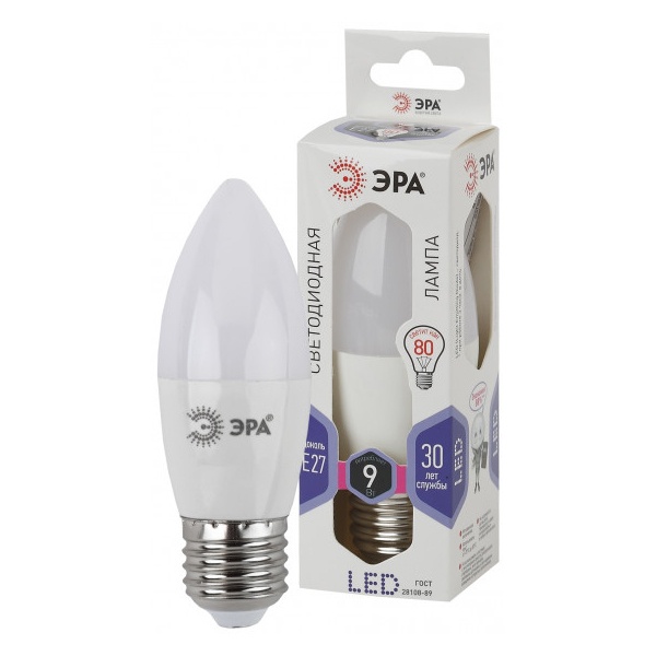 Лампа светодиодная свеча ЭРА LED B35 9W 860 6000K 220V E27 дневной свет Б0031410