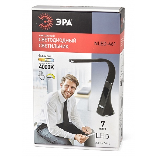 Светильник LED бытовой настольный ЭРА, многофункциональный, мощностью 7 Ватт, нейтральный белый свет, цвет черный Б0031609