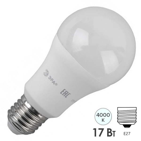 Лампа светодиодная A60-17W-840-E27 грушевидная 1360лм ЭРА Б0031700