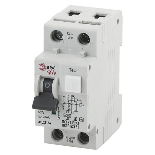 • Дифавтомат ЭРА 1П+Н С10А 30мА тип A однофазный электронный 6кА АВДТ-64 (NO-902-08) (дифференциальный автомат, АВДТ)