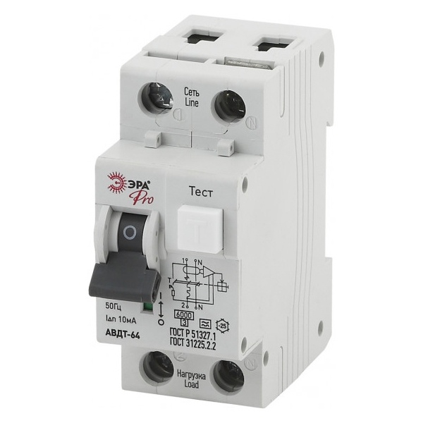 • Дифавтомат ЭРА 1П+Н В25А 10мА тип A однофазный электронный 6кА АВДТ-64 (NO-902-13) (дифференциальный автомат, АВДТ)