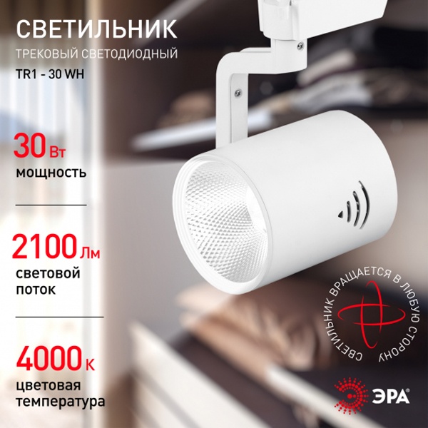 Б0032099 Светильник светодиодный трековый ЭРА TR1 - 30 WH 30W белый COB