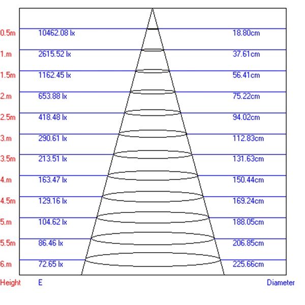 | Угол светового излучения | Узкий луч |
