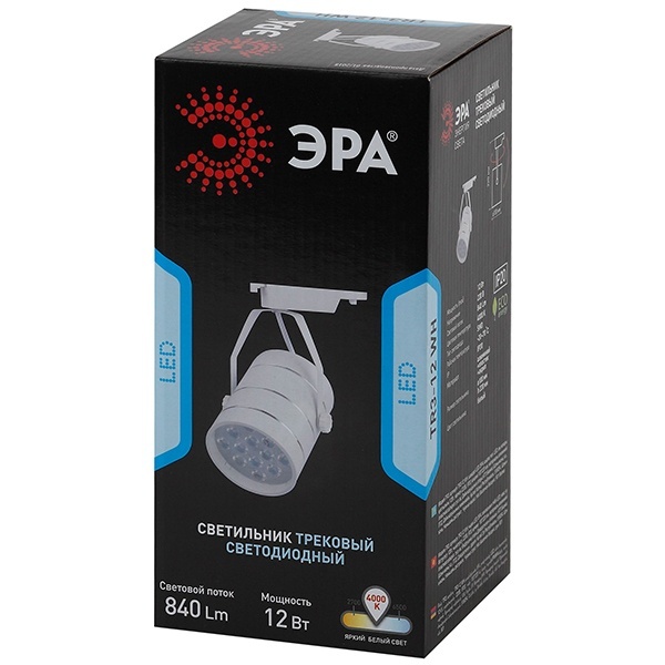 Трековый светодиодный светильник ЭРА TR3 для монтажа на шинопровод, мощностью 12 Ватт, нейтральный белый свет, цвет белый Б0032106