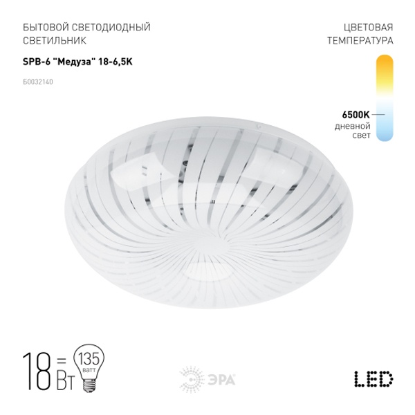 SPB-6 "Медуза" 18-6,5K (A) Бытовые свет ЭРА Светодиод. св-к 18Вт 6500K 1400Лм 335x98 (10/60)