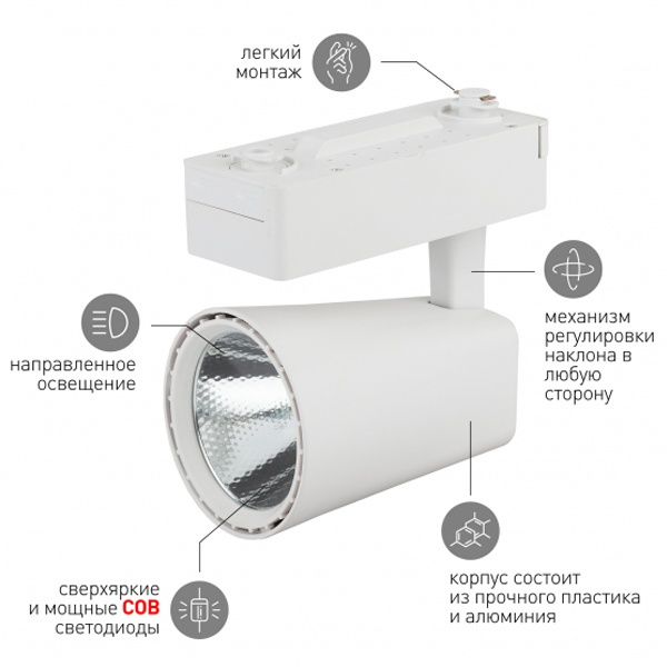 Светодиодный трековый светильник - это осветительное устройство, использующее светодиоды (LED) в качестве источника света и предназначенное для установки на трековую систему.