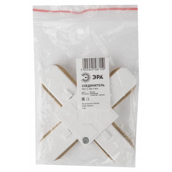 В современных торговых залах, выставочных центрах, жилых домах и квартирах все чаще используют трековые осветительные системы, которые могут иметь несколько уровней или сложную конструкцию. Как правило, токоведущие шины имеют длину от 1 до 2 метров, и их приходится соединять между собой, чтобы отдельные профили собрать в единое целое и обеспечить постоянную передачу напряжения ко всем источникам света. Чтобы соединить два участка трека под прямым углом, используют Х-образный соединитель шинопровода. Данная модель TR7 отечественного производителя Эра представляет собой компактную деталь с пластиковым корпусом, в которую встроена алюминиевая шина, проводящая ток. В коннекторе есть 2 контакта, предназначенные для подключения к электрической сети и заземления системы освещения. Внешне корпус окрашен в белый цвет и выполняет функцию изолятора. Изделие рассчитано на работу в сети с напряжением 220 Вольт частотой 50 Герц. Габаритные параметры: длина и ширина – 93 мм, высота – 17 мм. Степень защиты – IP20. Срок службы составляет 30 000 часов. Благодаря угловому соединителю секции шинопровода могут создавать различные геометрические формы.