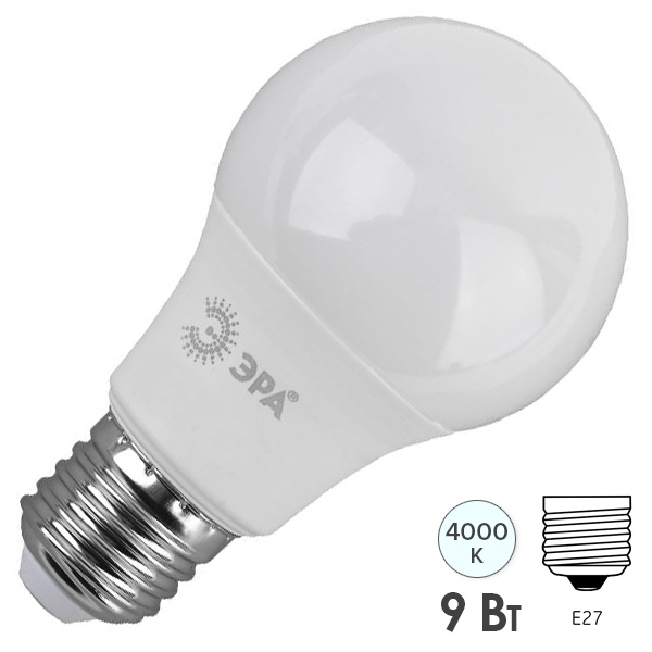 Лампочка светодиодная ЭРА STD LED A60-9W-840-E27 E27 / Е27 9Вт груша нейтральный белый свет